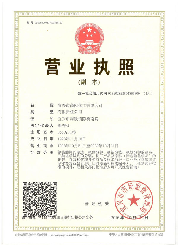 Copyright(C)2022, Yixing Gaoyang Chemical Co., Ltd. All Rights Reserved. Supported by ChinaChemNet ChemNet Toocle Copyright Notice 備案序號:蘇ICP備11031881號