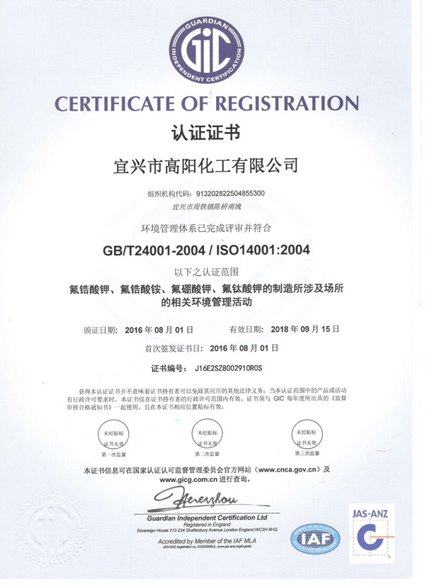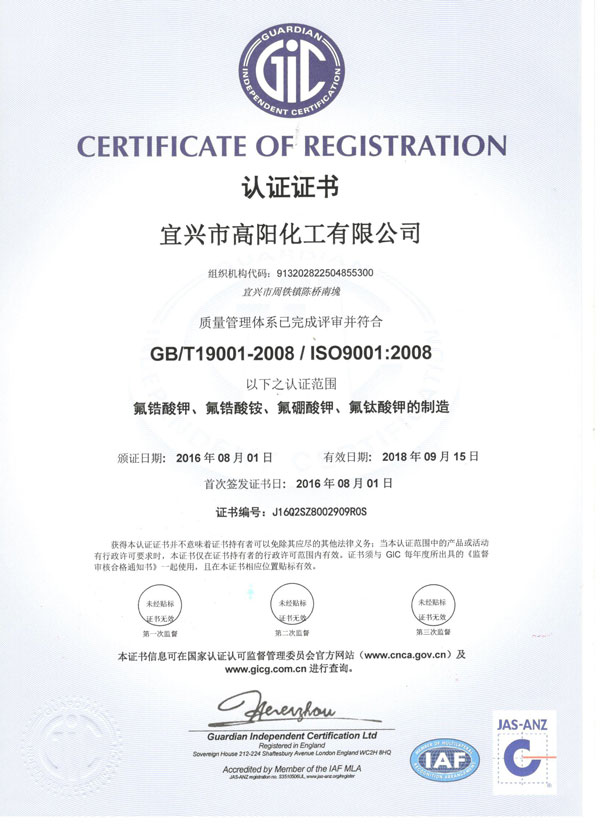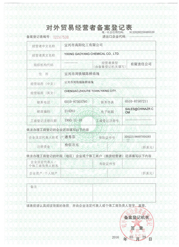Copyright(C)2022, Yixing Gaoyang Chemical Co., Ltd. All Rights Reserved. Supported by ChinaChemNet ChemNet Toocle Copyright Notice 備案序號(hào):蘇ICP備11031881號(hào)